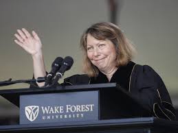 Personally, I think Abramson missed a great opportunity. She needs a job and what better way to sell yourself than to address an audience of parents who shelled out approximately $200,000 to send their sons and daughters to Wake Forest, a prestigious Atlantic Coast Conference institution that, contrary to its name, is not a school simply for insomniacs and tree enthusiasts. Certainly there had to be a few CEOs in that crowd. So rather than simply telling the grads about resilience and imploring them to “show what you are made of,” Abramson should have led by example. Like this: