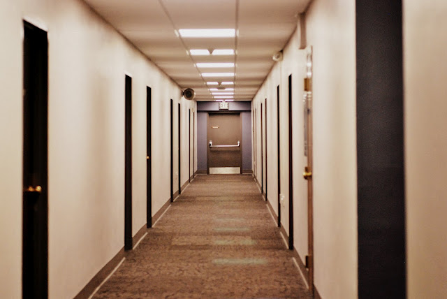 Every door on the second floor: closed. Ditto for the third and fourth floors. No music emanating from behind the wooden barriers; no audible hints of TVs being watched; nothing that sounded like a phone conversation with parents or significant others. Just silence.