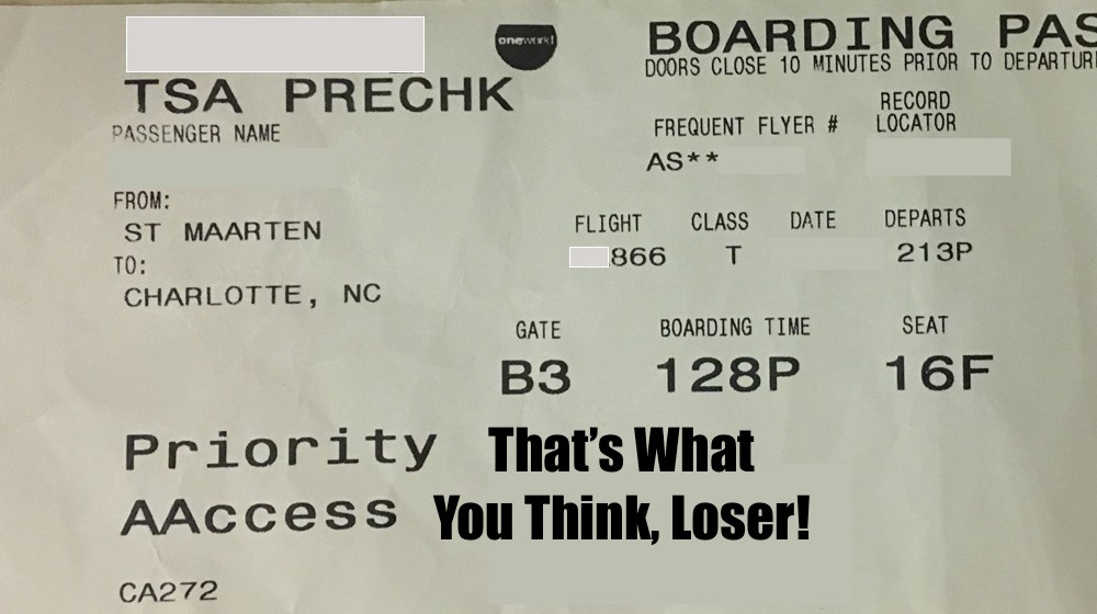 Now we’d like to board Greg. And, Greg, please be advised there is no more overhead bin space so we’re going to have to check your shave kit to Omaha. Or, possibly, Nairobi. But you do get to board through the lane marked, ‘Priority Boarding.’ Pretty cool, right?